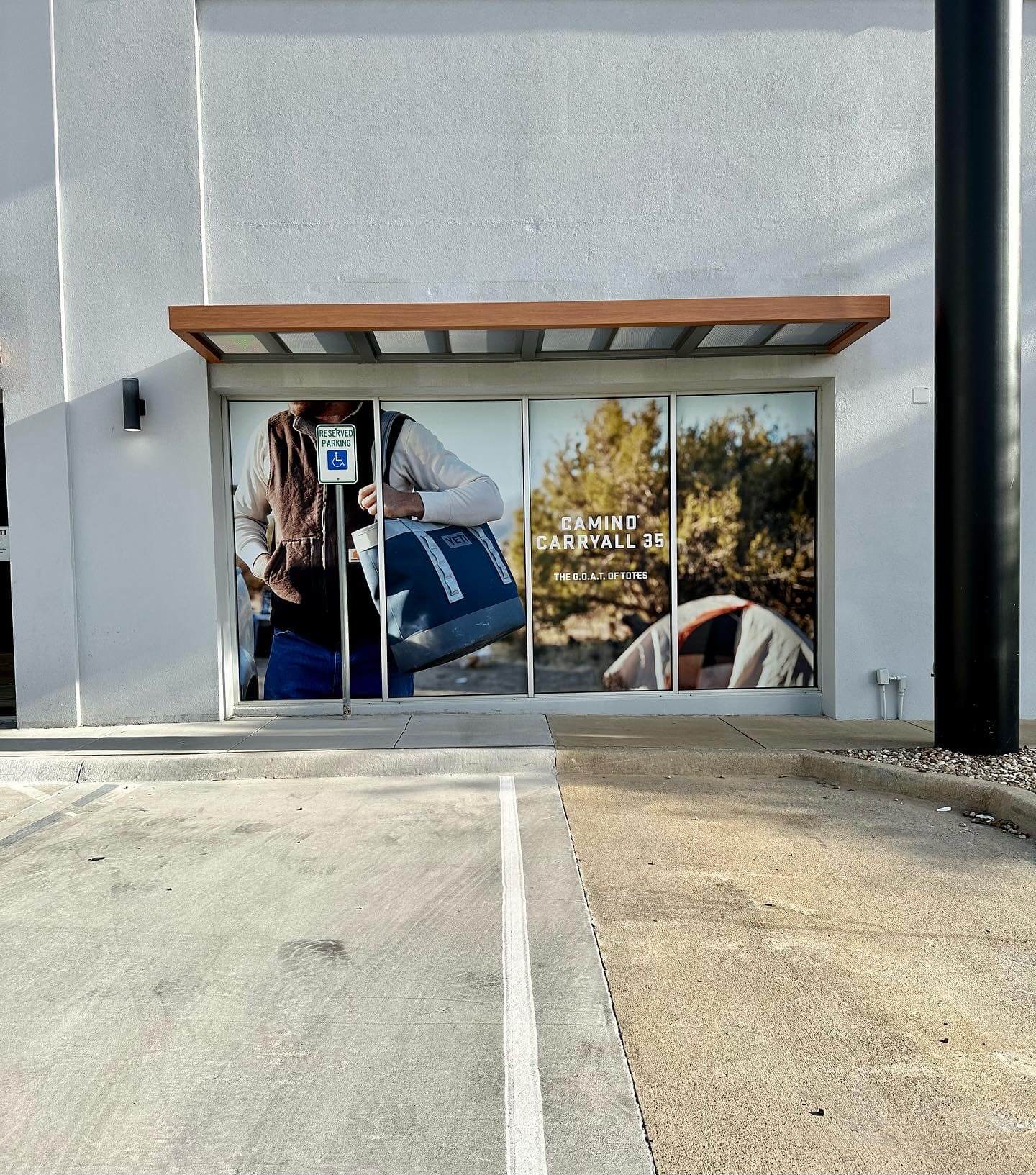 Perforated vinyl is a special type of window film designed with tiny holes that let people see out from one side while displaying a full-color graphic on the other. From the outside, your design appears bold and opaque, but from the inside, you can still see through the window almost like normal glass.